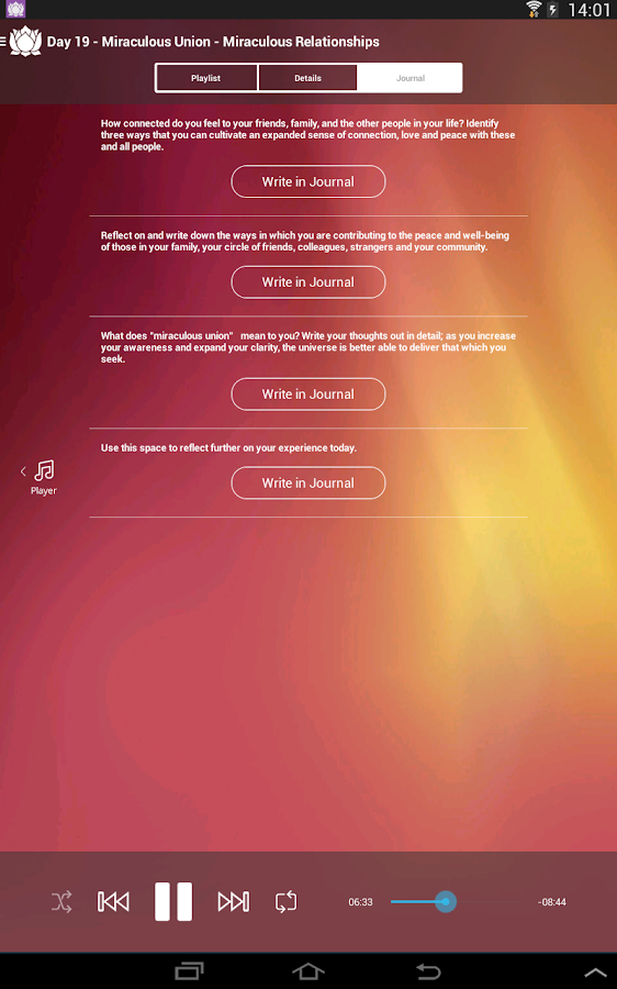 "meditation.""" http://www.chopra.com"2"Deepak"Chopra,"M.D.,and"ChopraCenter http://www.marc.ucla.edu"2"UCLA"Mindful"Awareness"Research"Center"–"classes,"resources," free"Guided"Meditations"and"weekly"podcasts"on Spotify$Music"–"stream"any"track,"artistor"album"and"play"for"free ... Fetch Document