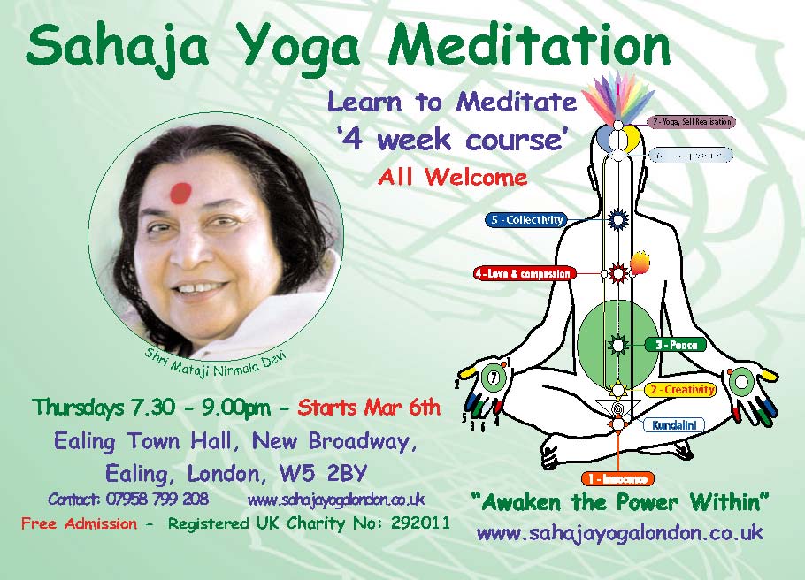 Meditation Classes Sahaja Yoga Meditation, Ealing. Free classes with demonstrations, information and practical experience of meditation techniques. Children must be accompanied adult • The Ealing Town Hall, Ealing | Children & Families Activity Guide. ... Access Document